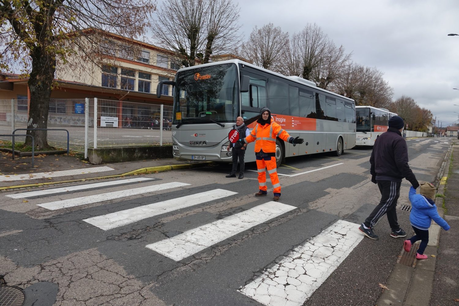 Laurent, Richard et Jérémy, agents communaux, sont affectés plusieurs fois par jour aux abords des groupes scolaires de Thaon et sur les artères principales afin d’assurer la traversée des passages piétons en toute sécurité.