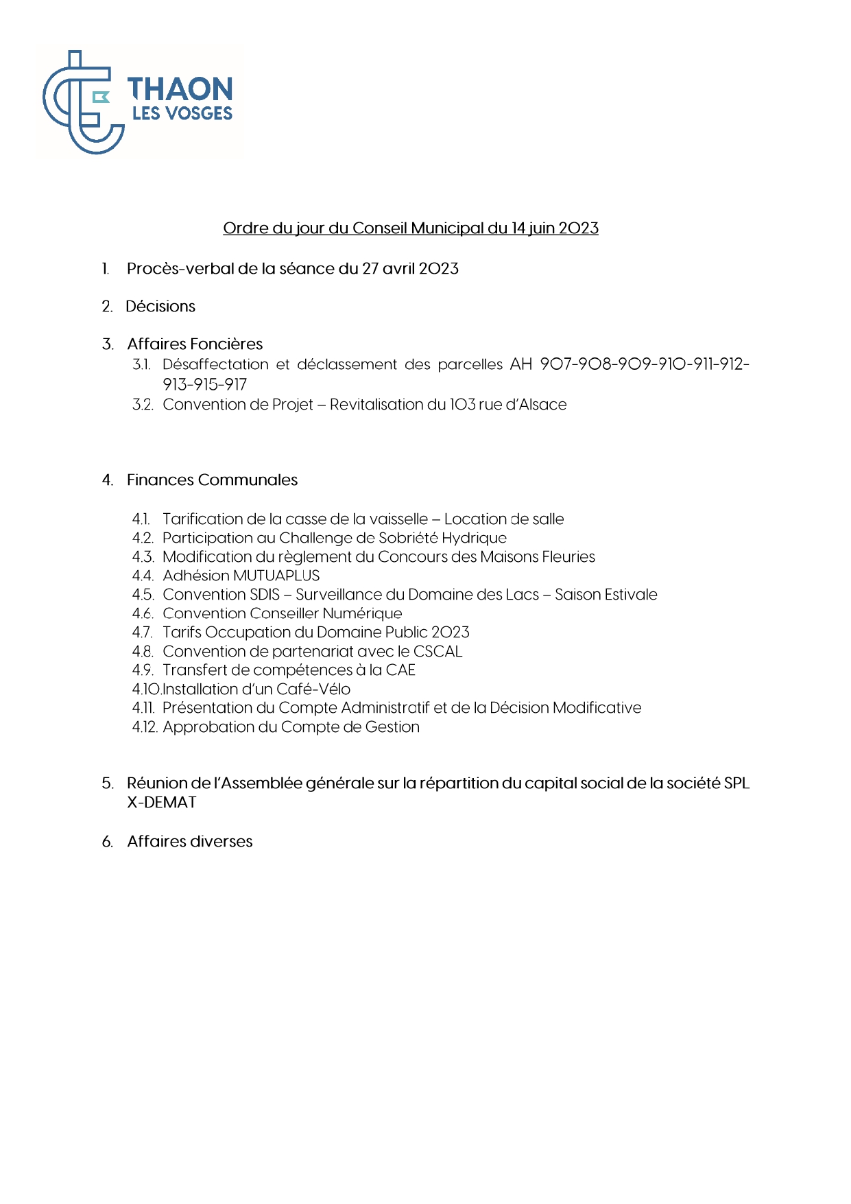 Le prochain conseil municipal se tiendra mercredi 14 juin à 18h30 au sein de la salle Verdun.