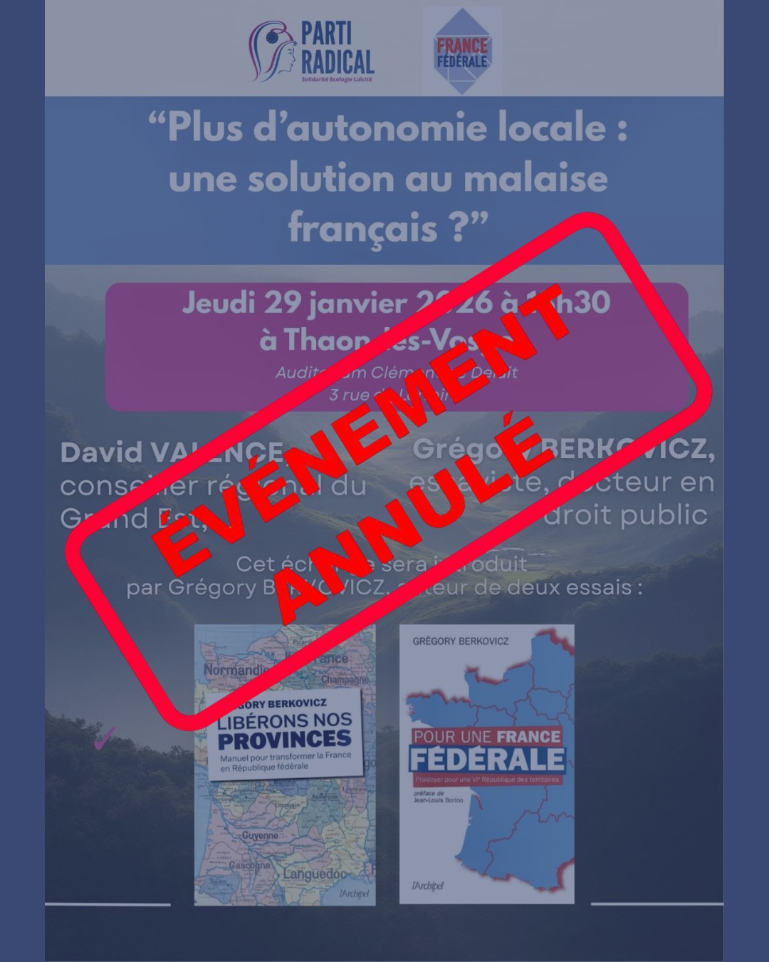 Accueil > Actualités > Annulation de la conférence de David Valence