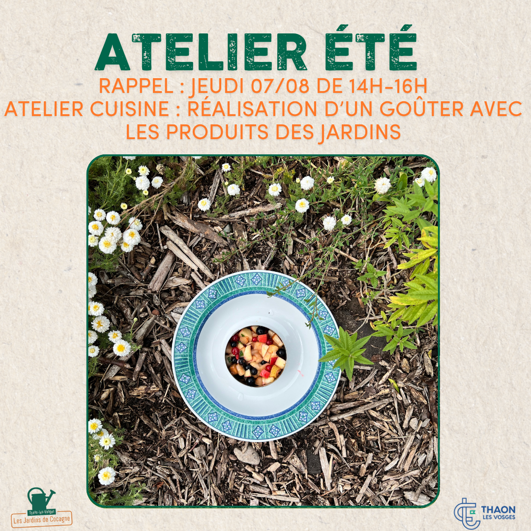 Jeudi 07 août, de 14h à 16h, venez réaliser un goûter avec les produits des Jardins, une pause tout en gourmandise pour toute la famille !