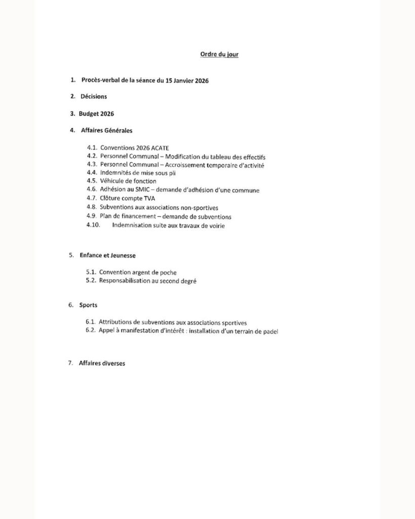 Conseil Municipal : ordre du jour