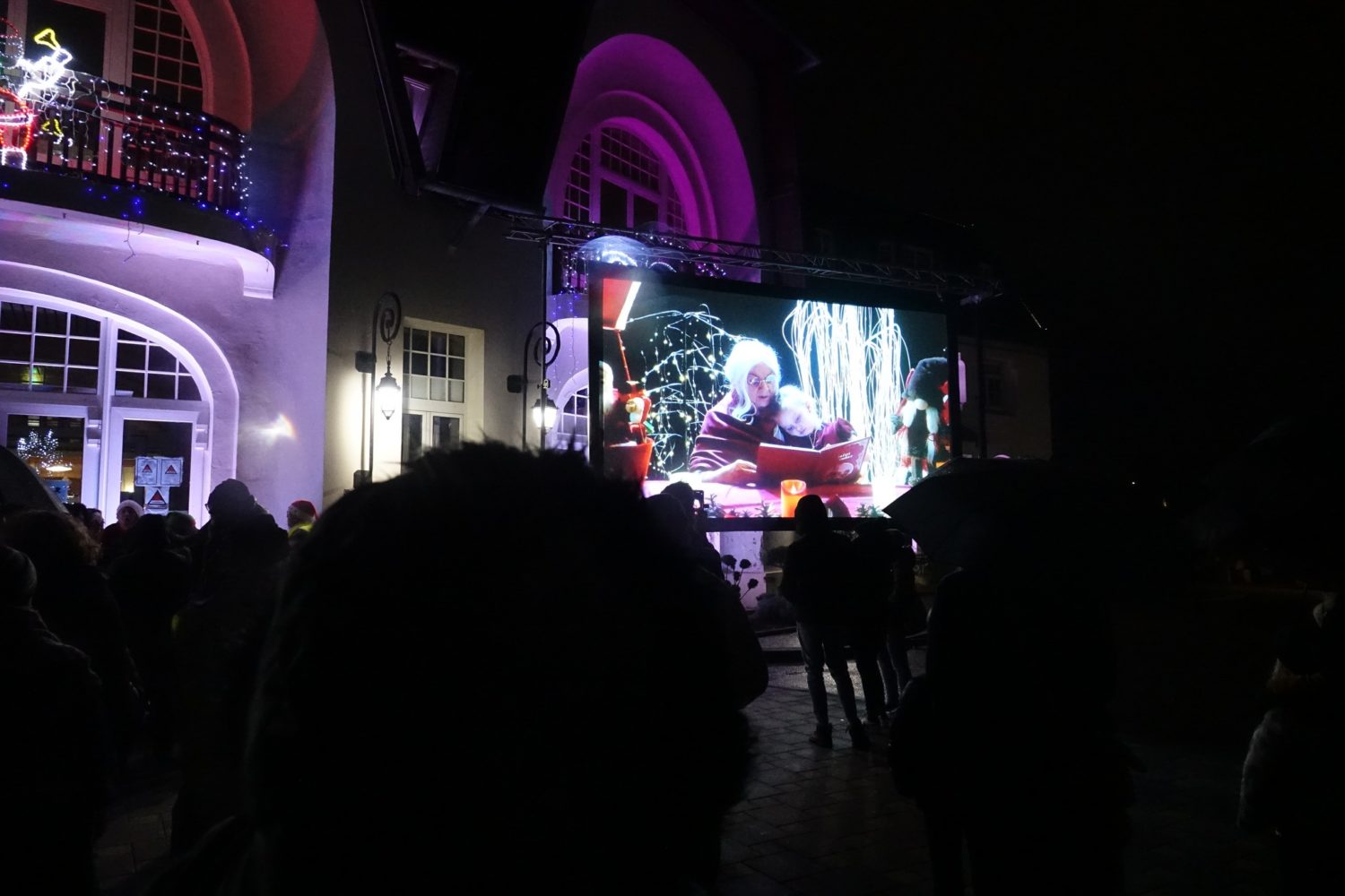 A l’arrivée du défilé à la Rotonde, une vidéo sur le conte de Saint Nicolas a été diffusée sur écran géant.