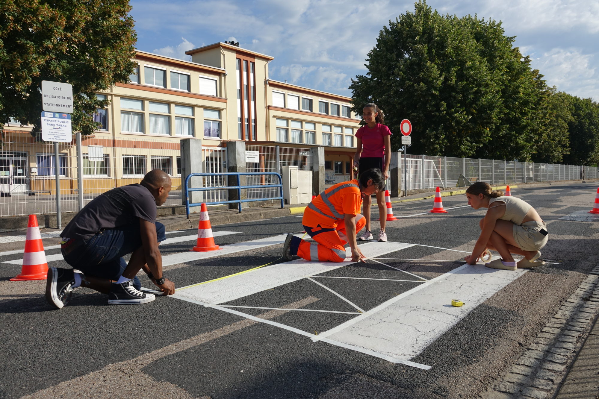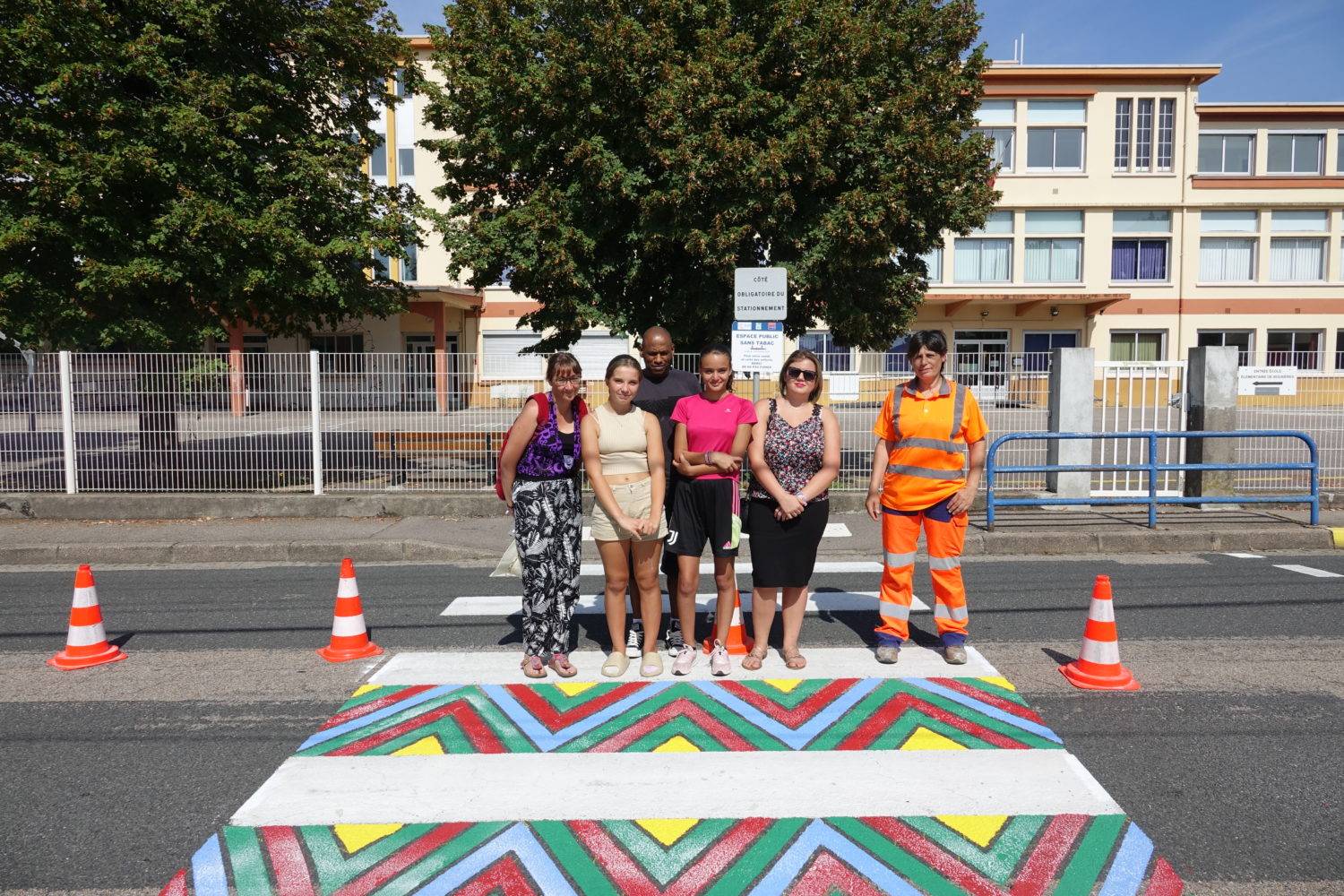 Hier, sous un soleil de plomb, nos jeunes accompagnées de Valérie, ouvrière de maintenance et peintre au sein de la ville, ont pu mettre leur projet en peinture. Leur responsable ainsi que des élus municipaux étaient là pour les accompagner dans leur réalisation et finaliser leur dernier projet sur le passage piéton de l’école de Bouxières. Et ce n’est pas fini, puisque dans quelques jours le même projet verra le jour sur le passage piéton de l’école de Gohypré !