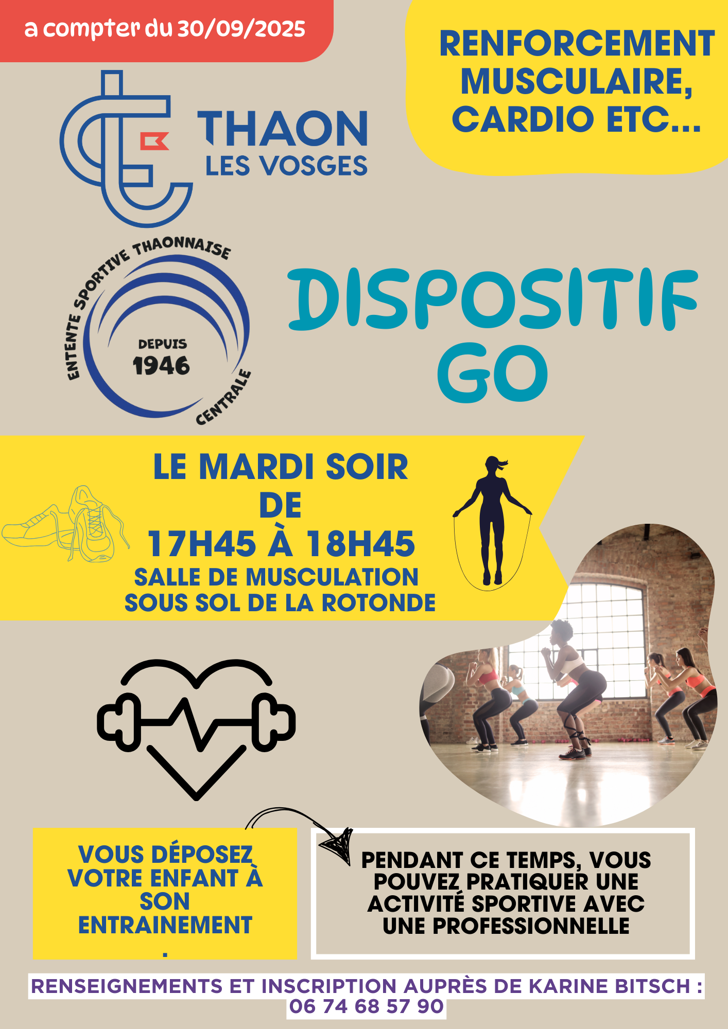 Sollicitées par Perrine Sperandio et le réseau Élues Locales des Vosges, à l’origine du dispositif Go!, les sections de l’Entente Sportive Thaonnaise s’associent à l’initiative pour proposer une nouvelle offre aux mamans.