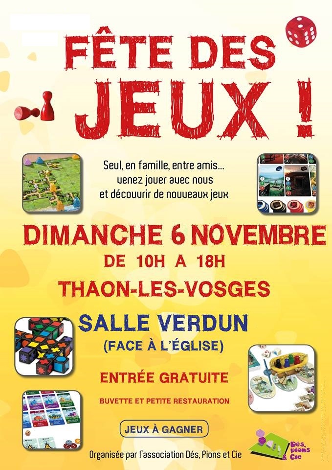 L’association Dés Pions et Cie. organisera sa traditionnelle fête des jeux ce dimanche 6 novembre de 10h à 18h à la salle Verdun !