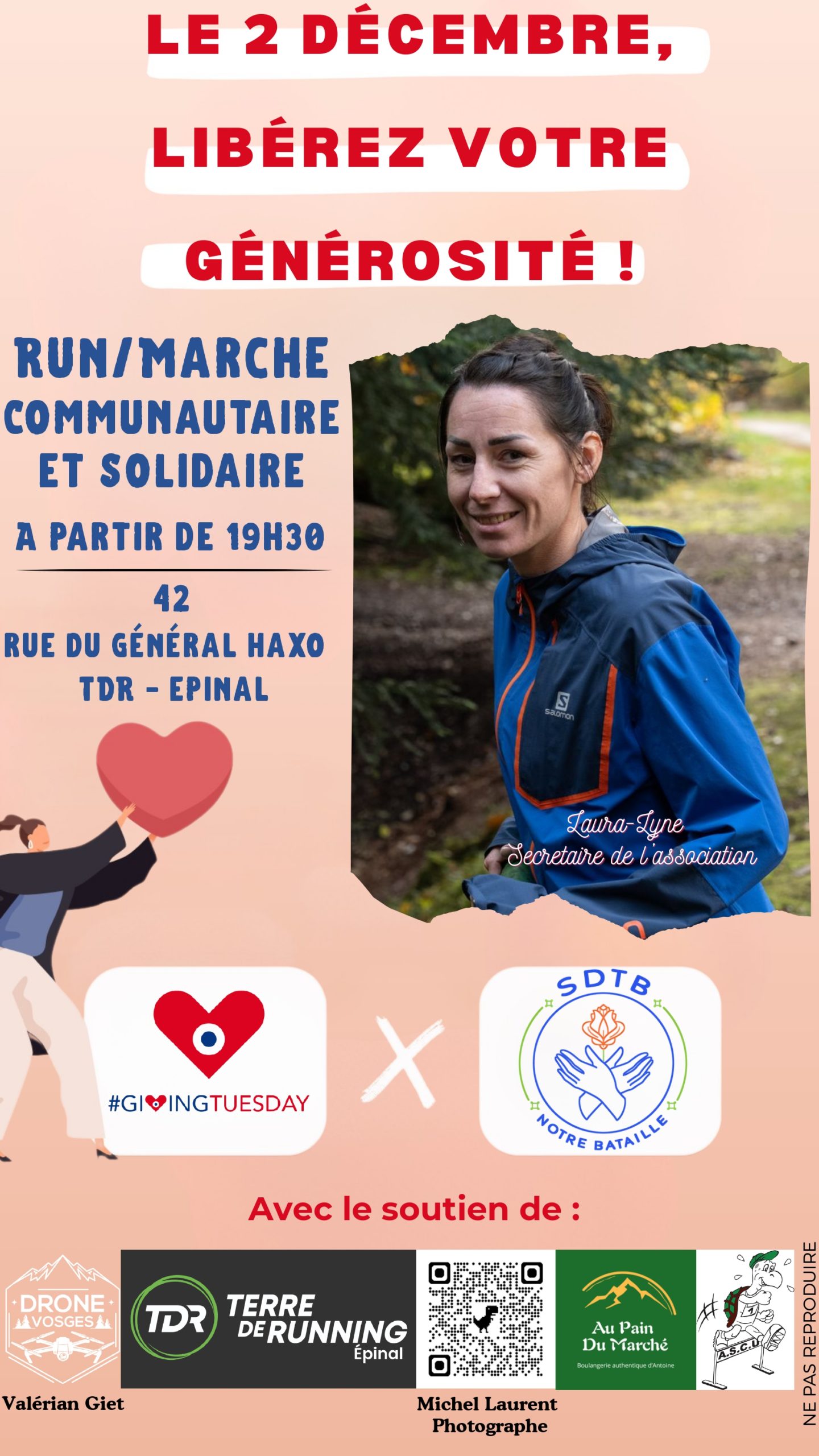 L’Association SDTB, notre bataille organise une run/marche communautaire et solidaire dans le cadre de l’événement “Giving Tuesday” et la Ville de Thaon-les-Vosges est fière de le relayer !