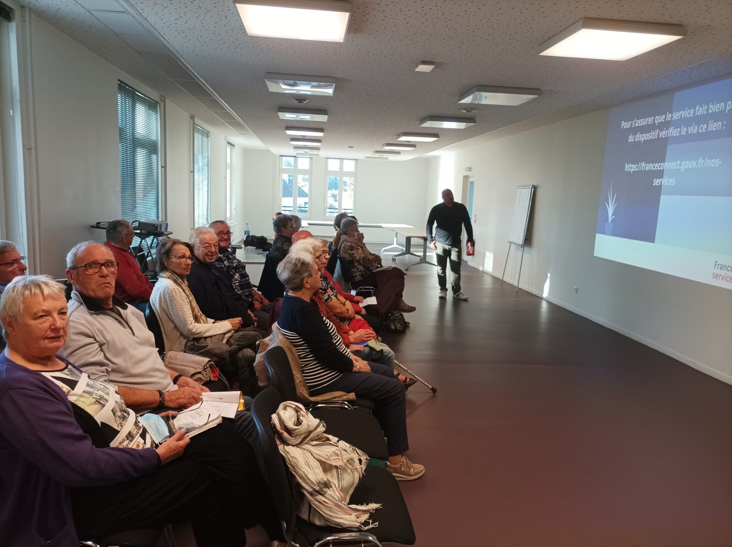 Mercredi 5 octobre, la Maison France Services de Thaon-les-Vosges a organisé une information collective sur le compte France Connect, animée par l’animatrice France Service (Emily JACQUES) accompagné de son conseiller numérique France Service (Sylvain NICOLAS) et du conseiller numérique de la commune (Pascal LOMBARD).