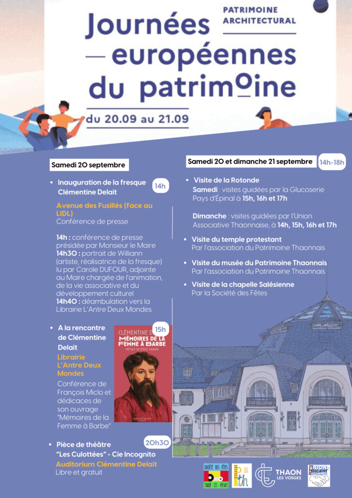 - Un week-end pour redécouvrir l’histoire de Thaon-les-Vosges, ses monuments, et des personnalités qui ont marqué notre territoire comme Clémentine Delait.