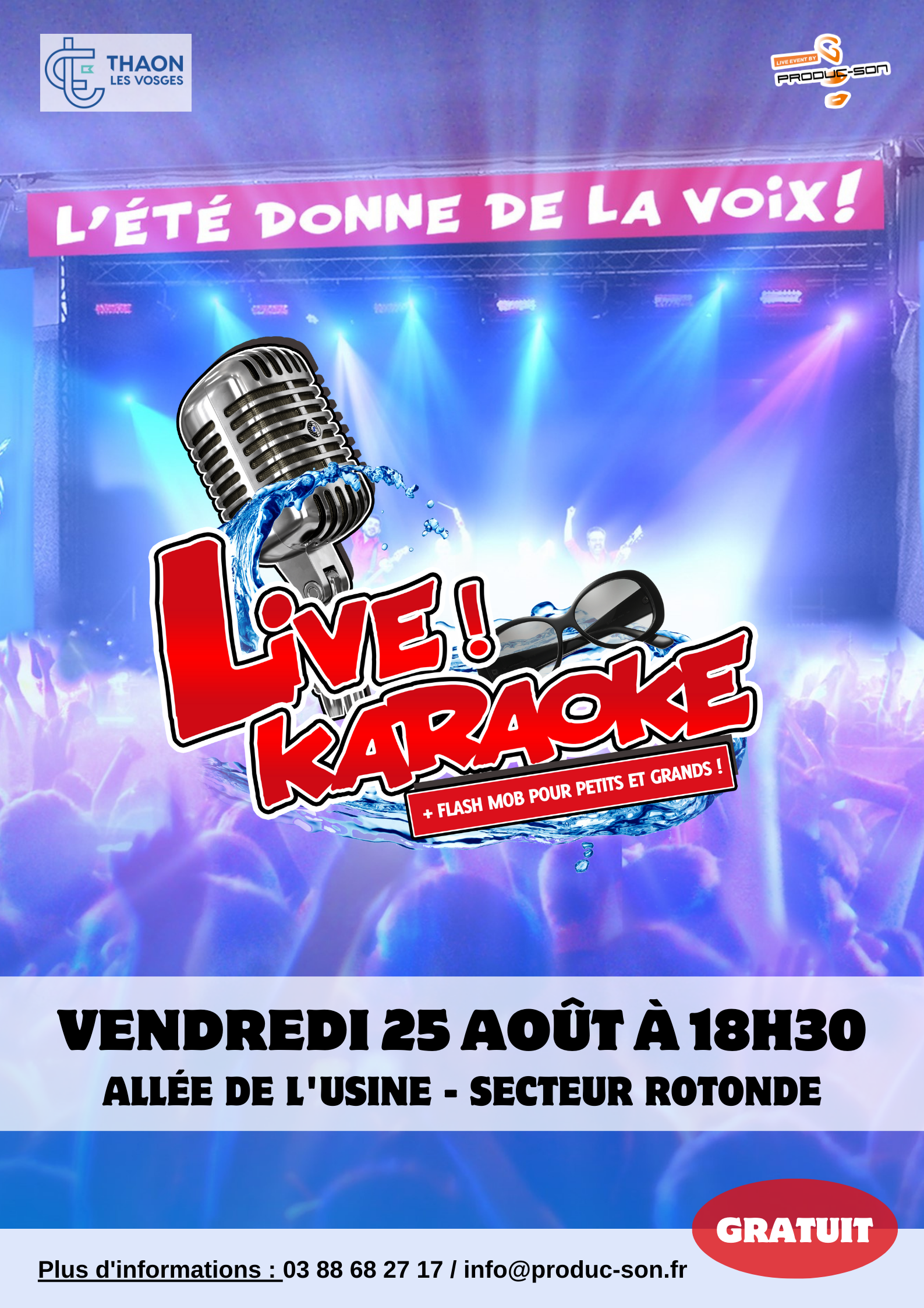 lors de notre karaoké live géant qui se déroulera le vendredi 25 août prochain à partir de 18h30 en open air à l’allée de l’Usine, secteur de la Rotonde !