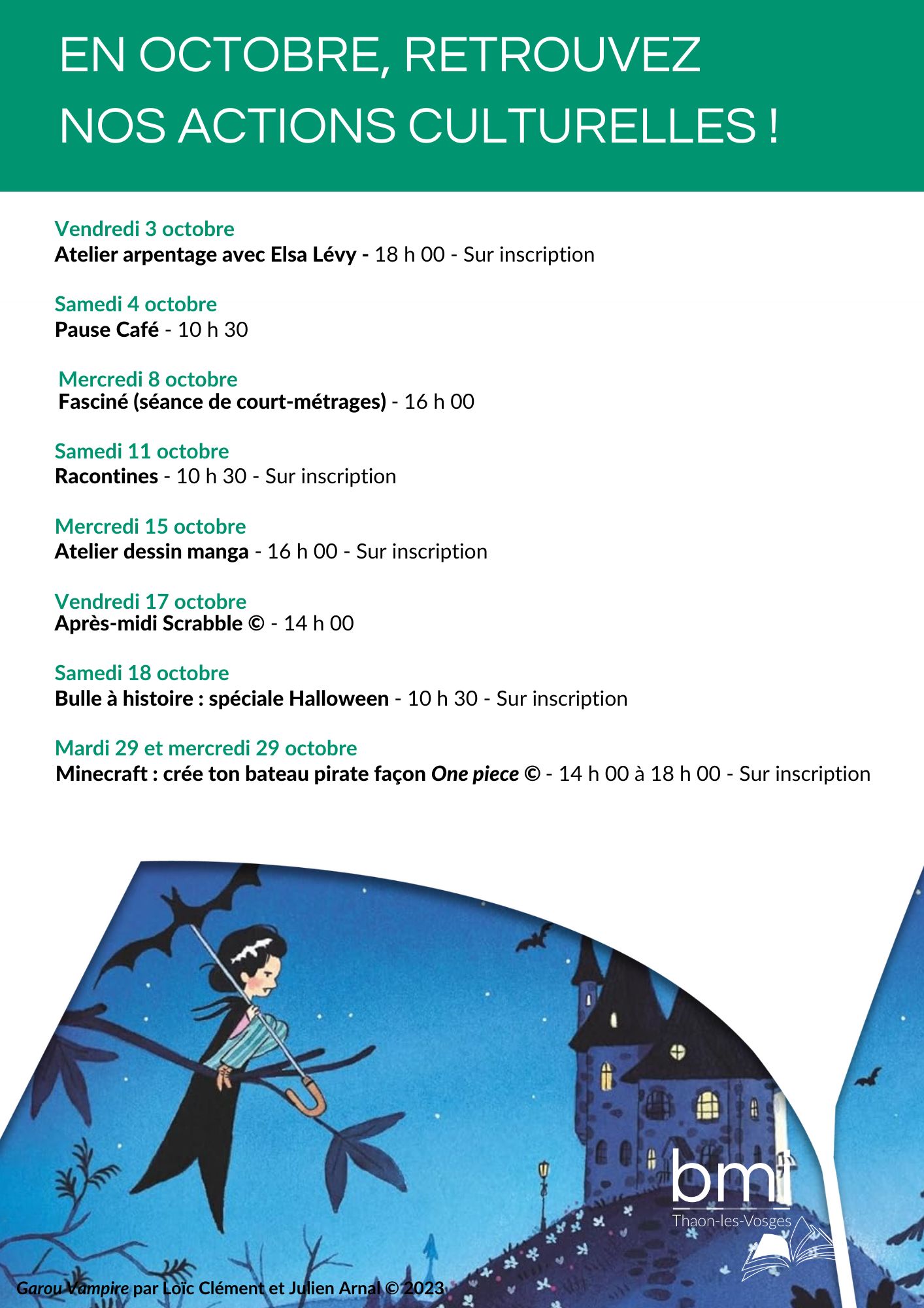 Tout au long du mois d’octobre, la Médiathèque intercommunale de Thaon-les-Vosges vous propose un programme riche et varié pour petits et grands.