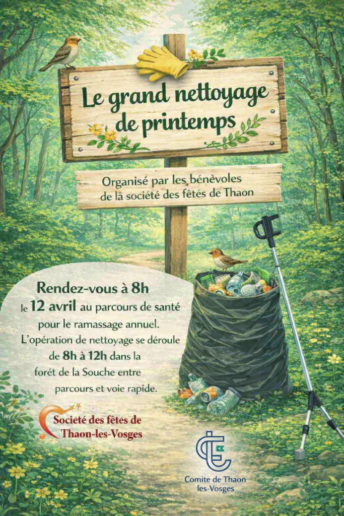 La Société des Fêtes de Thaon-les-Vosges organise son nettoyage de printemps et invite tous les habitants à participer à cette opération citoyenne.