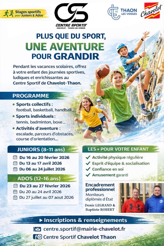 Inscriptions & renseignements : centre.sportif@mairie-chavelot.fr