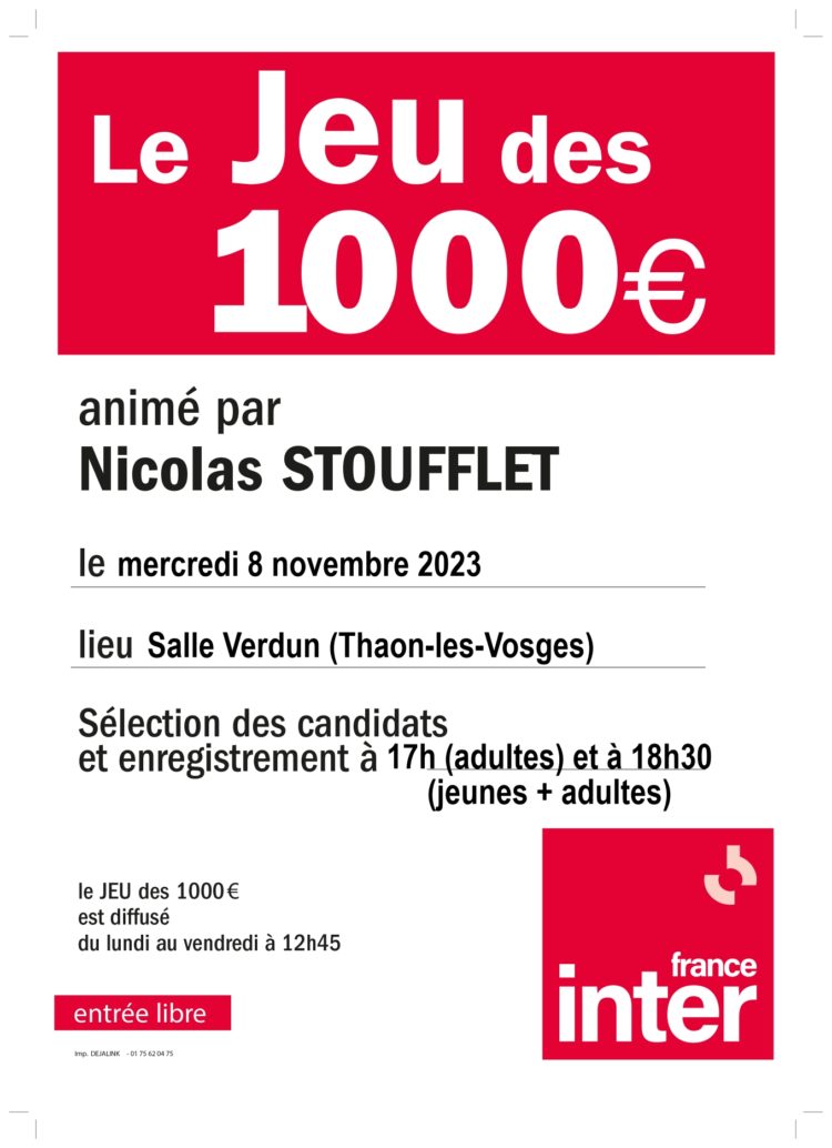Jeu des 1000€ : le célèbre jeu de culture générale à Thaon-les-Vosges !