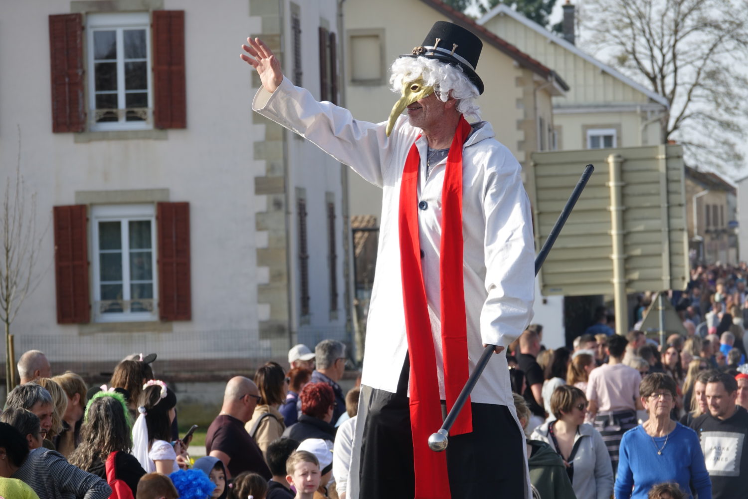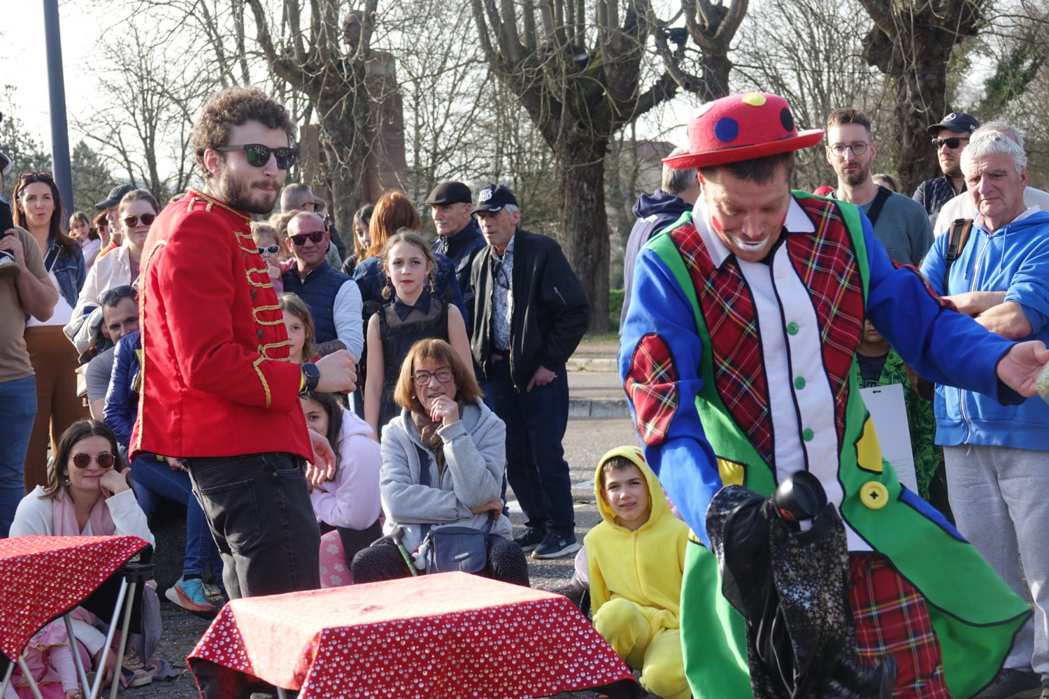 L’arrivée à la Rotonde a marqué un moment fort avec l’enfumage de Monsieur Carnaval suivi du show final de Magixsilli, avant de poursuivre la fête en déambulation vers la Fête Foraine de Thaon-les-Vosges