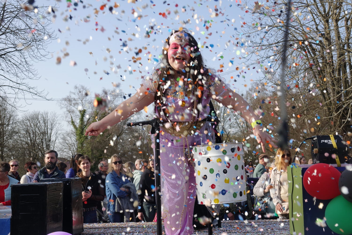 À 15h, le défilé s’est élancé depuis l’école dans une explosion de couleurs, de musique et de bonne humeur !