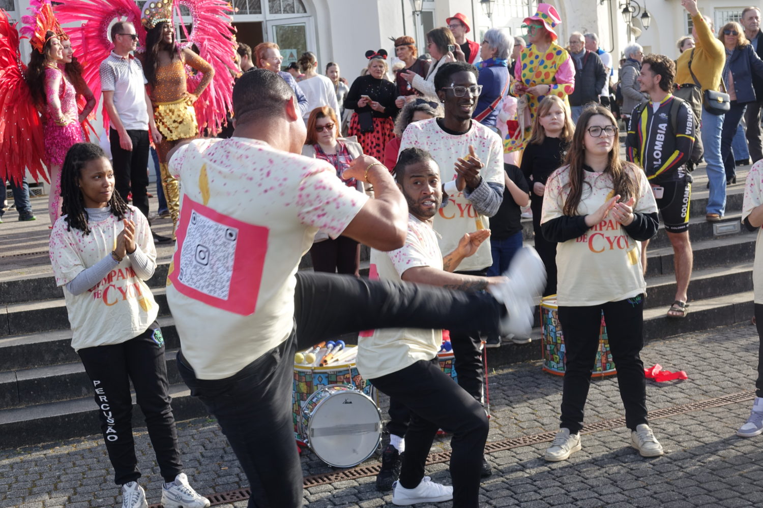 … et une improvision totale de capoeira devant la Rotonde par A Companhia de Cycy !