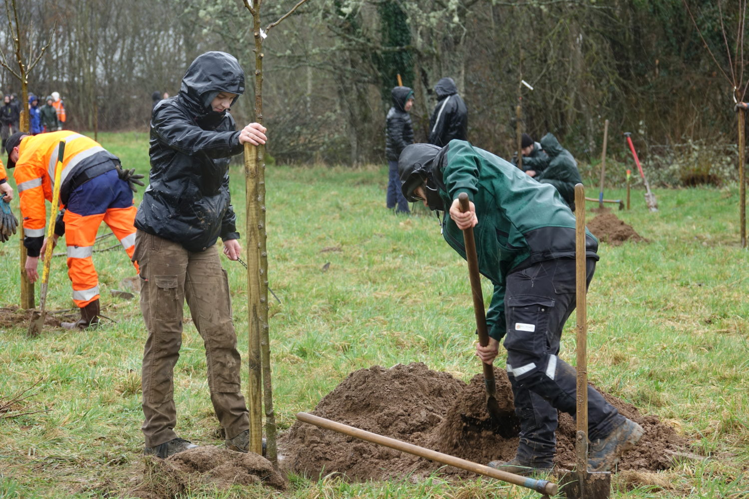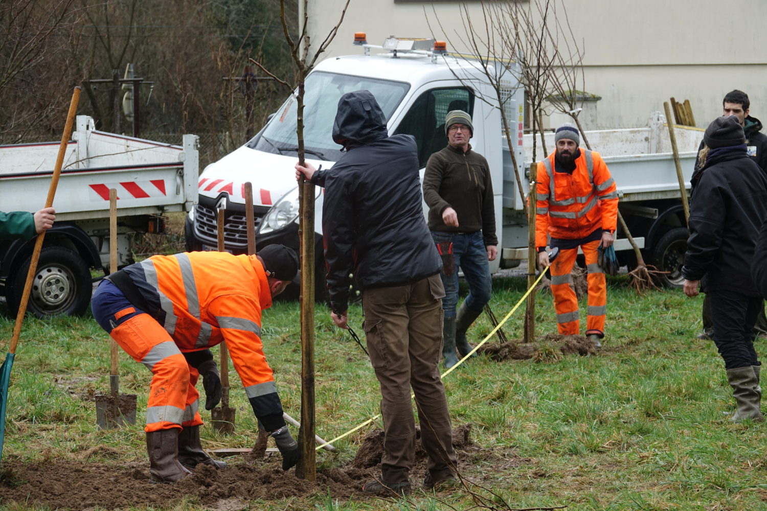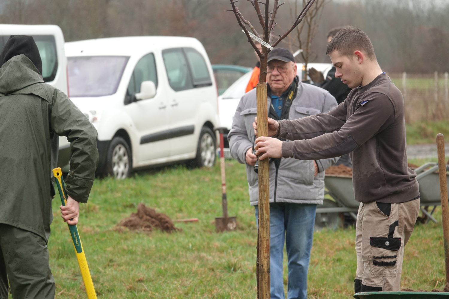 Un verger conservatoire, en partenariat avec l’école horticole et de paysage de Roville-aux-Chênes, a été créé sur une parcelle de 4279 m2 (classée agricole au PLU) rue des Aulnes. Une trentaine d’élèves de niveau BTS BP de l’École de Roville accompagnés de leurs professeurs, 3 personnes de l’entreprise à but d’emploi Label Initiative et des agents du service espaces verts s’étaient mis sur le pied de guerre jeudi dernier pour planter 25 arbres fruitiers dont des pommiers, poiriers et pruniers.