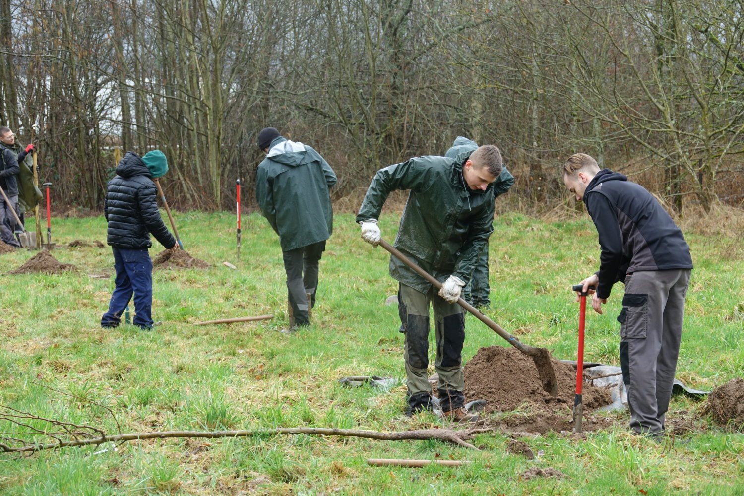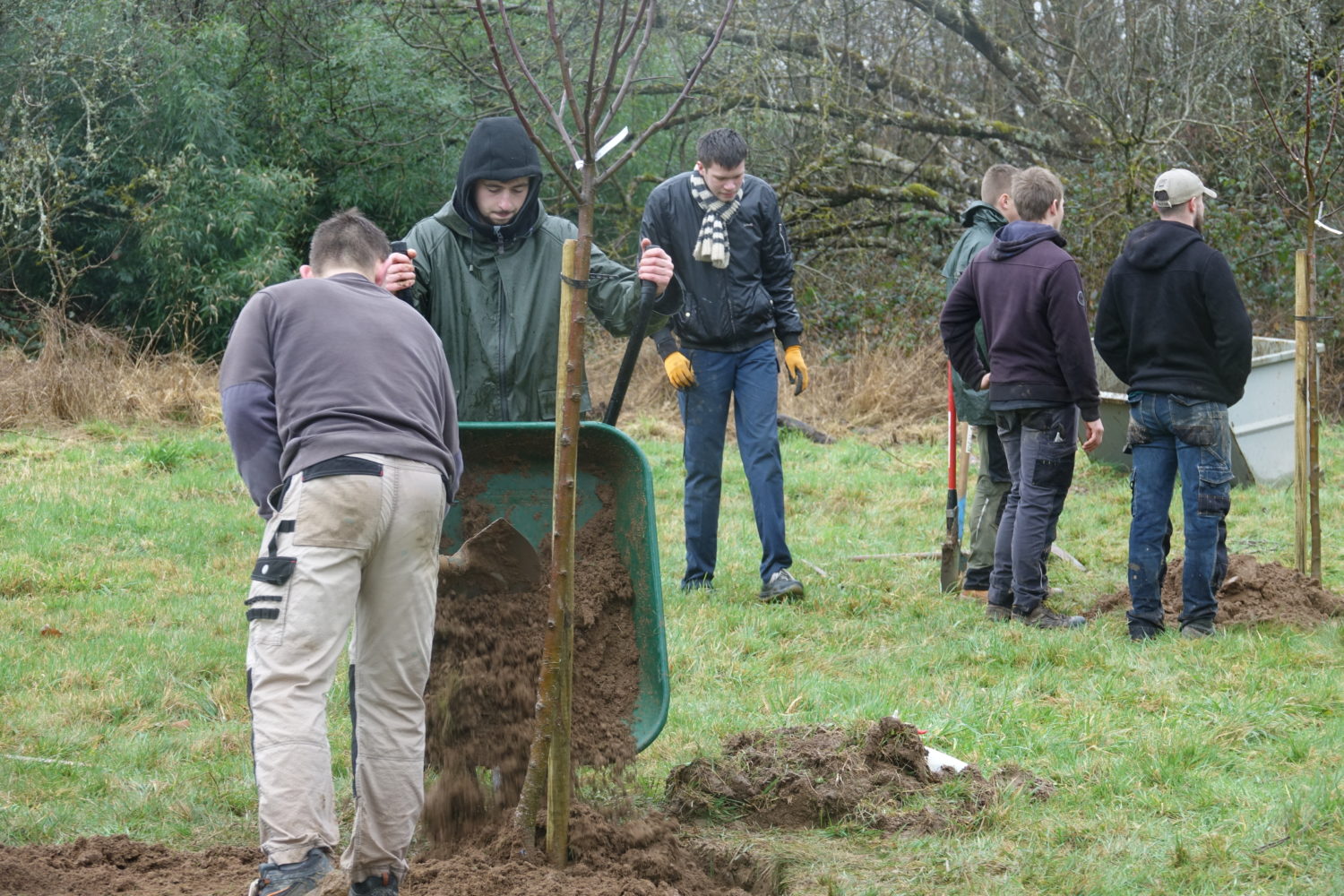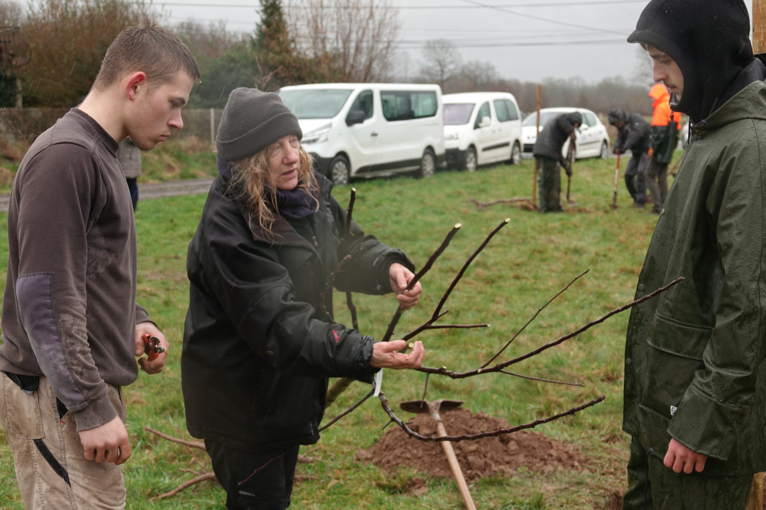 Un verger conservatoire, en partenariat avec l’école horticole et de paysage de Roville-aux-Chênes, a été créé sur une parcelle de 4279 m2 (classée agricole au PLU) rue des Aulnes. Une trentaine d’élèves de niveau BTS BP de l’École de Roville accompagnés de leurs professeurs, 3 personnes de l’entreprise à but d’emploi Label Initiative et des agents du service espaces verts s’étaient mis sur le pied de guerre jeudi dernier pour planter 25 arbres fruitiers dont des pommiers, poiriers et pruniers.