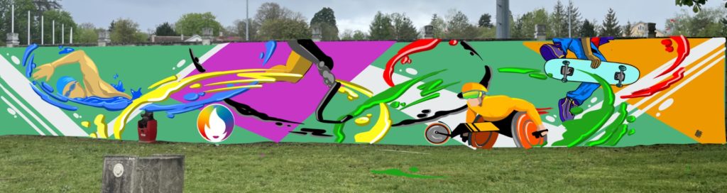 Lundi 12 et mardi 13 août, deux graffeurs talentueux seront à Thaon pour réaliser une fresque exceptionnelle en l’honneur des Jeux Olympiques et Paralympiques !