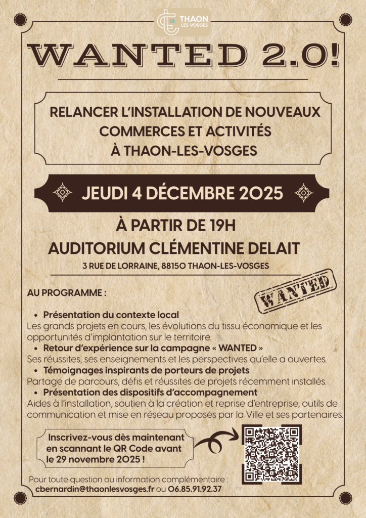 Vous avez un projet, l’envie d’ouvrir un commerce ou de développer votre activité ? La Ville de Thaon-les-Vosges vous donne rendez-vous pour une soirée dédiée aux porteurs de projets.