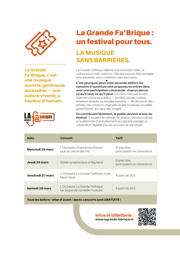 Cet événement s’inscrit dans le 𝟐ᵉ 𝐅𝐞𝐬𝐭𝐢𝐯𝐚𝐥 𝐋𝐚 𝐆𝐫𝐚𝐧𝐝𝐞 𝐅𝐚’𝐁𝐫𝐢𝐪𝐮𝐞, porté par l’association éponyme, qui se déroulera 𝐝𝐮 𝟐𝟓 𝐚𝐮 𝟐𝟖 𝐦𝐚𝐫𝐬 𝟐𝟎𝟐𝟔.