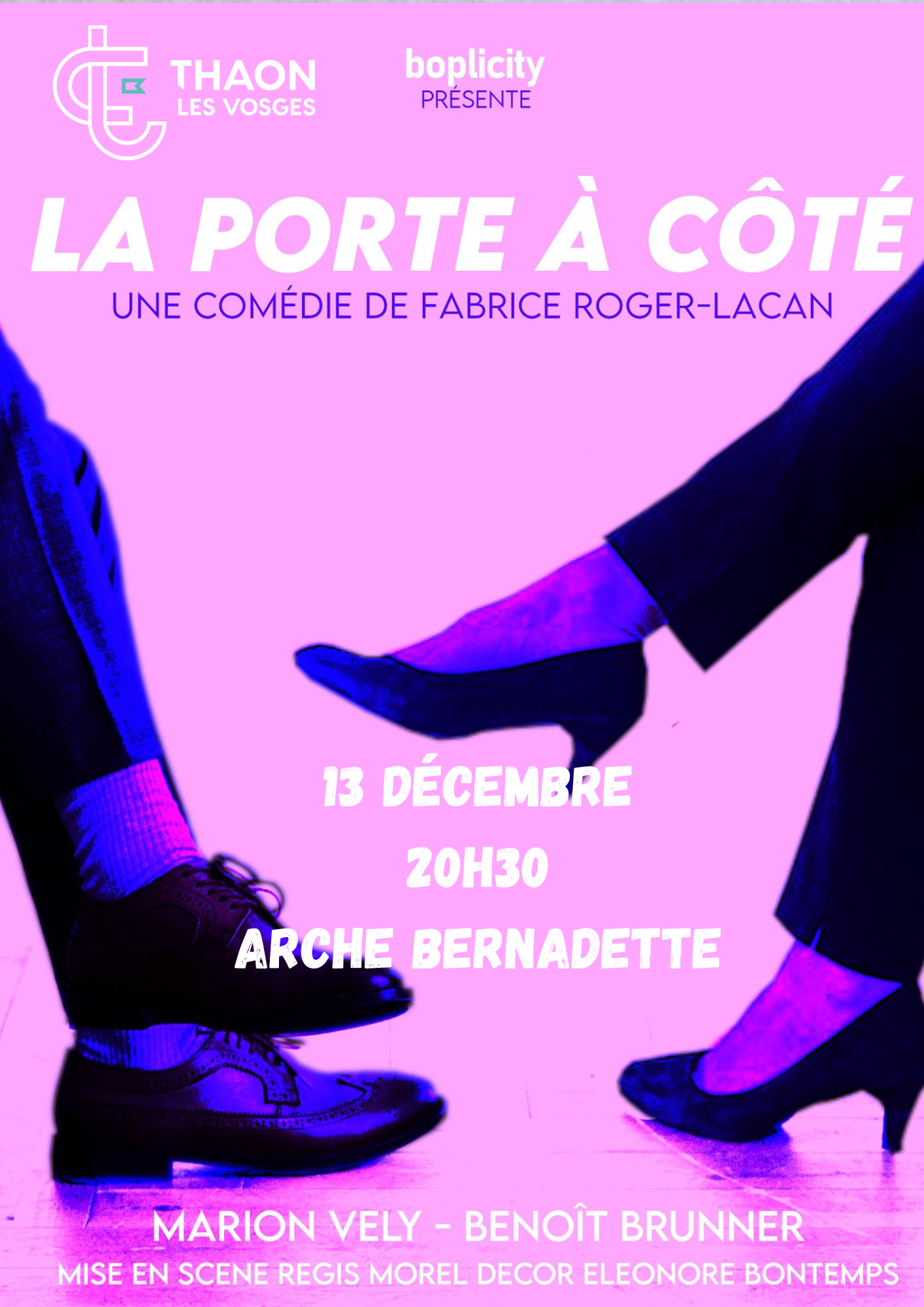 Samedi 13 décembre à 20h30, l’association Boplicity vous invite à découvrir la pièce de théâtre « La porte à côté » de Fabrice Roger-Lacan à l’auditorium Clémentine Delait.