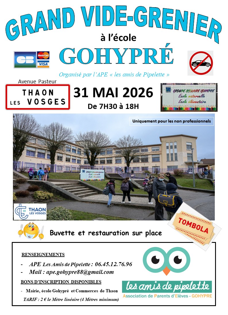 👉 Bons d’inscriptions disponibles en mairie, à l’école de Gohypré et chez les commerçants Thaonnais