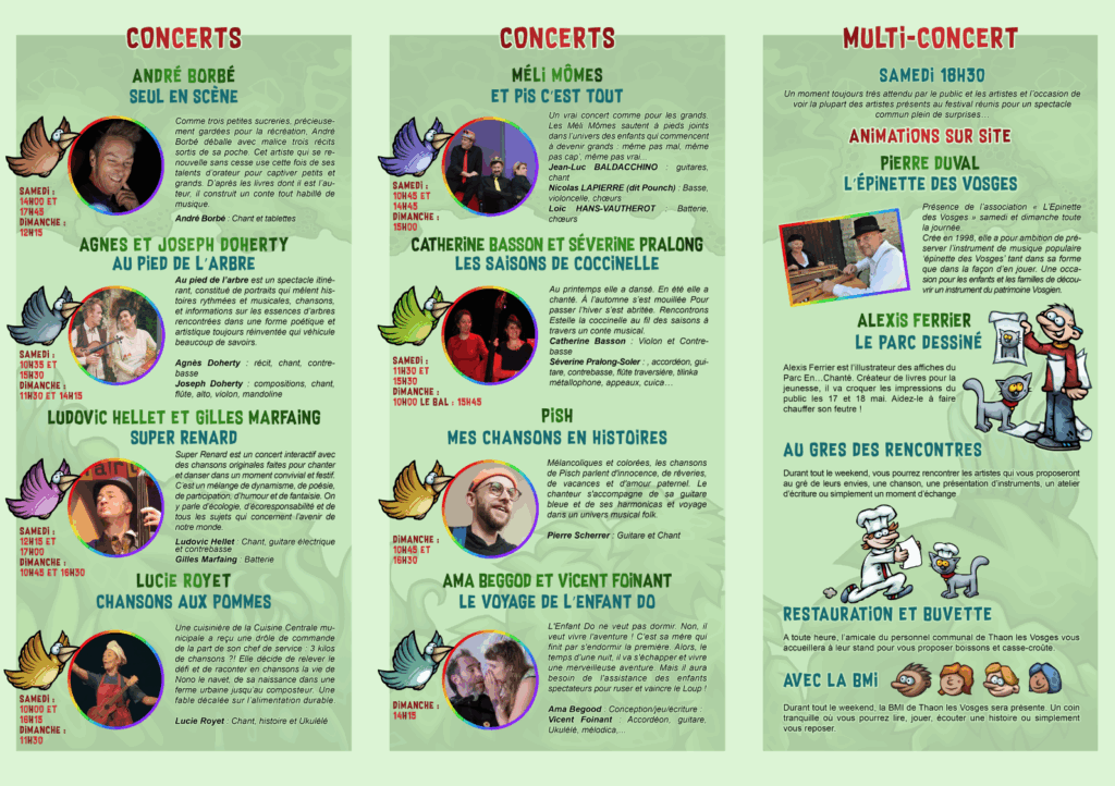 🎶 De 10h à 18h30 non-stop, une ribambelle d’artistes régionaux, bien connus dans l’univers de la chanson jeune public, monteront sur scène pour offrir aux enfants (et aux plus grands !) des concerts festifs, dynamiques et interactifs.